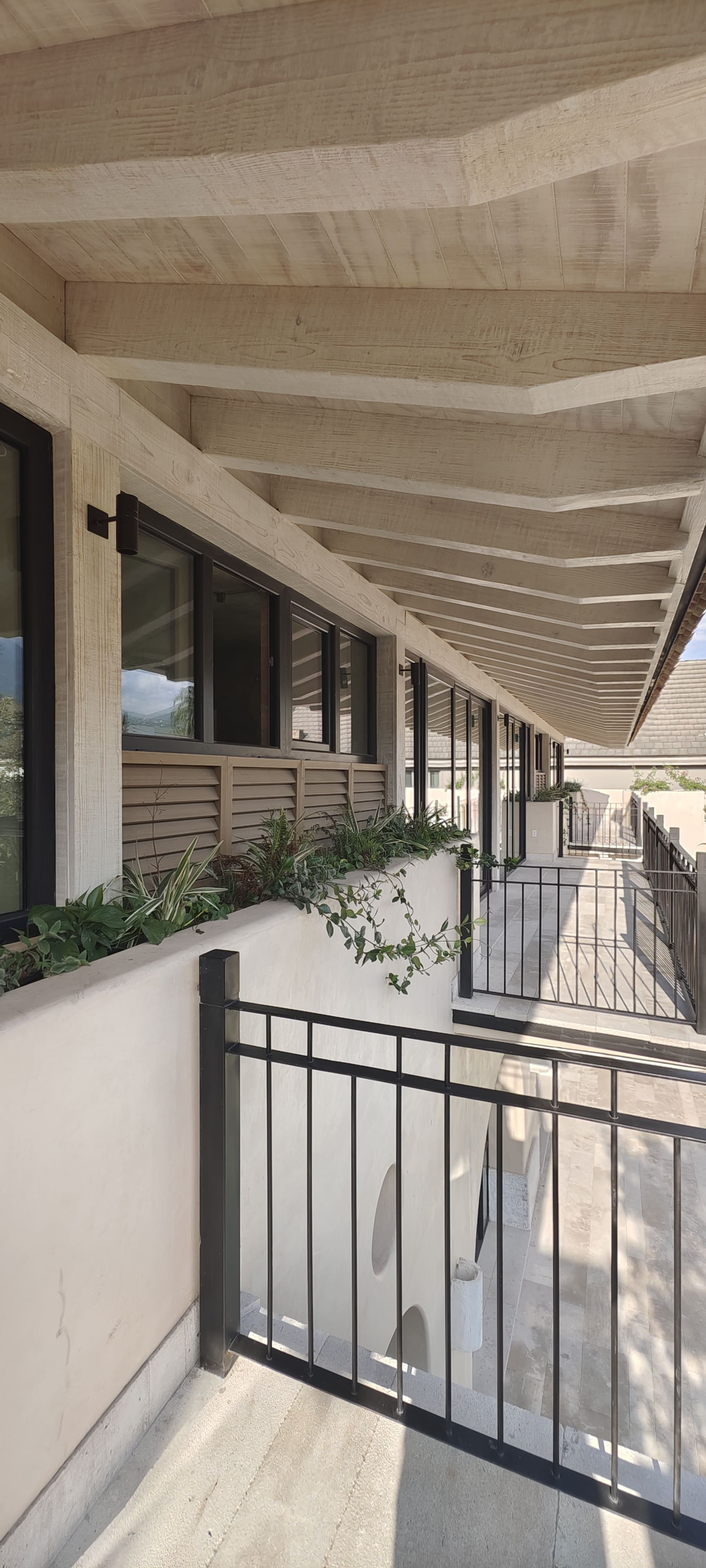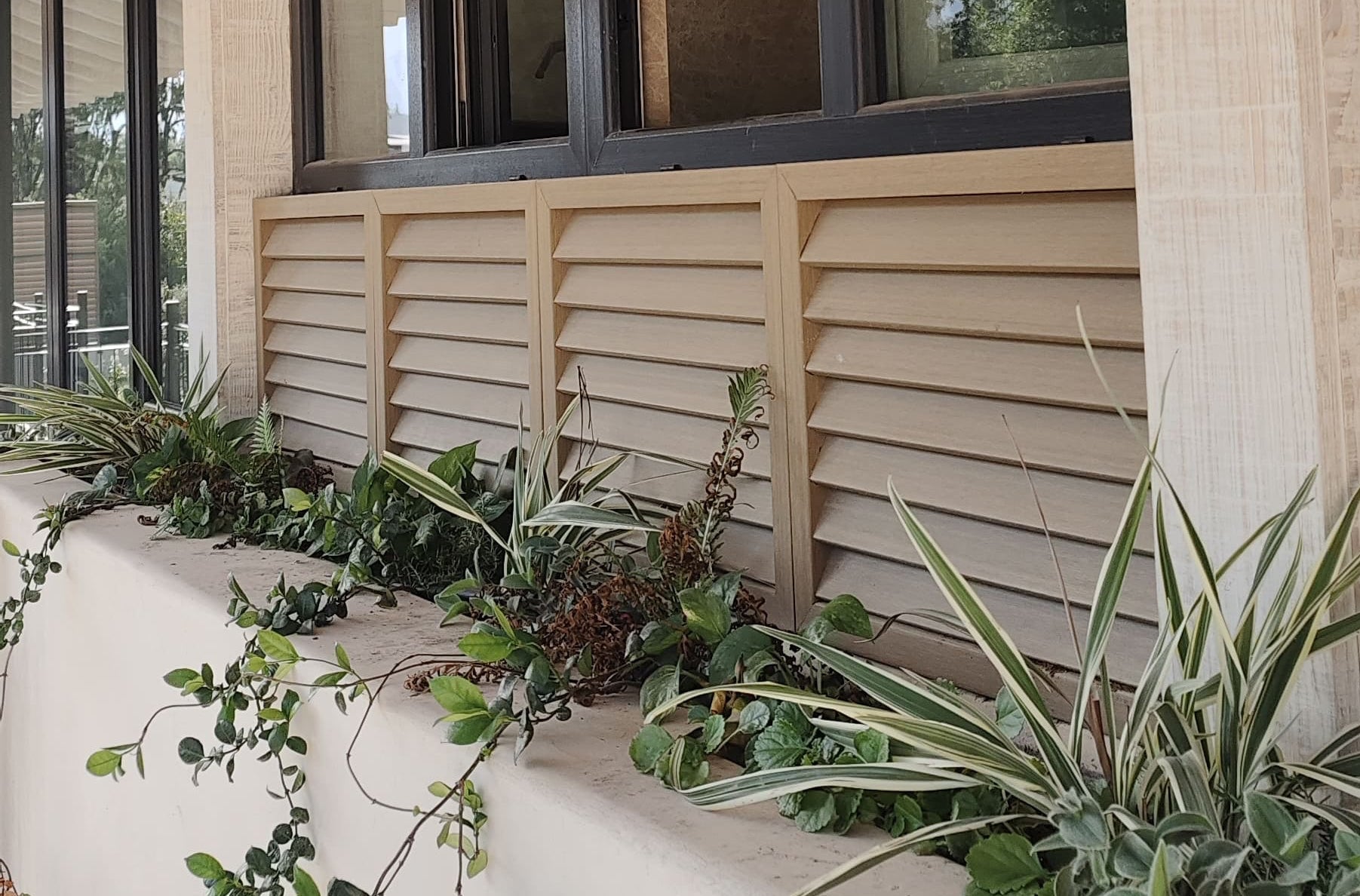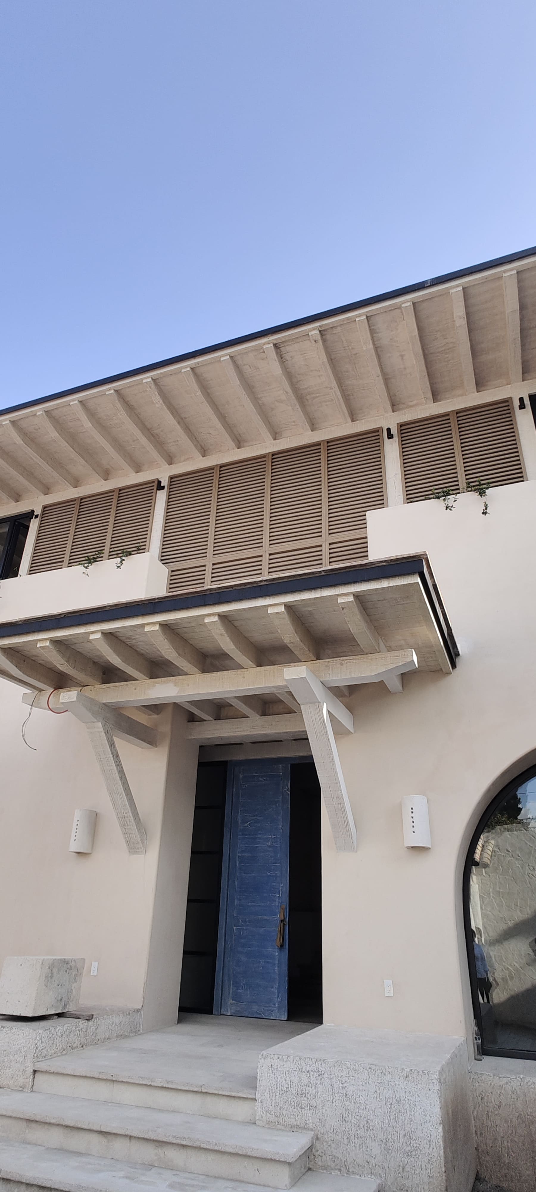 En el despacho de Artigas instalamos shutters de madera sintética en las ventanas y un muro de celosía en tono arena, creando una envolvente cálida que filtra la luz y aporta privacidad con sutileza. Este diseño integra ritmo, textura y serenidad visual, manteniendo coherencia con la arquitectura del espacio. Los tonos neutros y la textura de los materiales generan una atmósfera elegante y profesional.